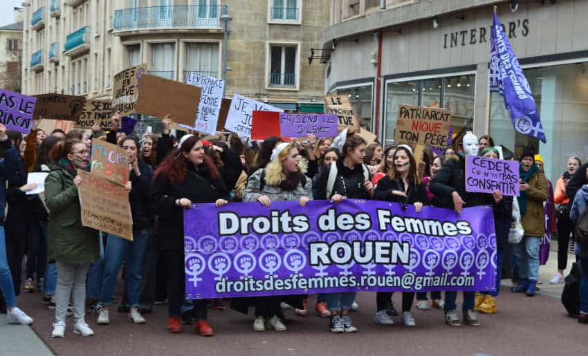 Des slogans, du violet. Du « Merci Adèle »; « ma vulve est une ZAD »; « le sexisme est partout, nous aussi « ; « violeur agresseur, à toi d’avoir peur »; « toutes en grève »; « on se lève et on se barre ». Et puis les masques avec les noms des femmes victimes de leurs bourreaux….