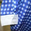 Chemise femme chic et fluide à motifs damiers bleu blanc. Le col et les poignets sont en coton blanc. Pli creux dans le dos